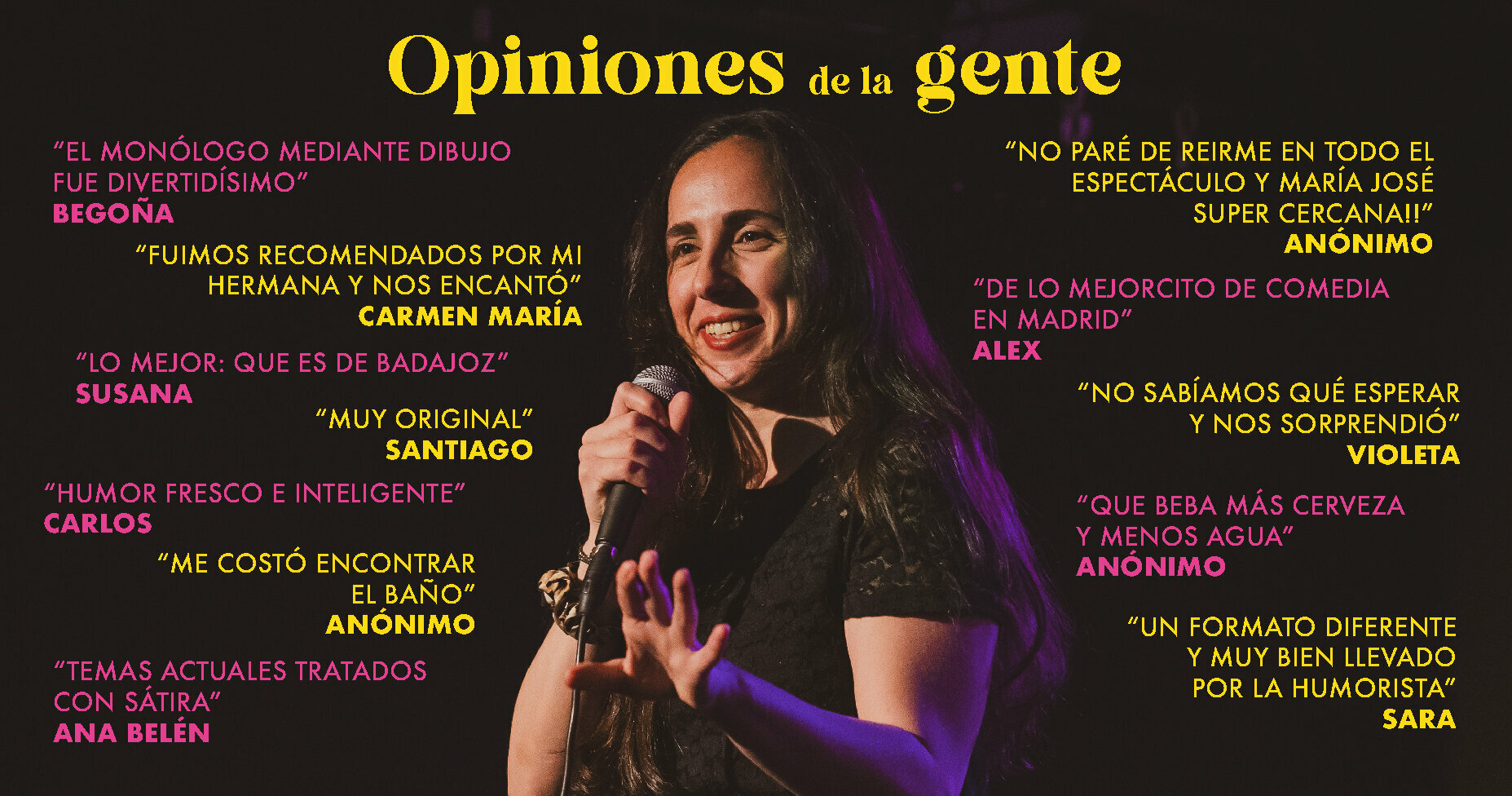 MJ Corraliza (MJ.DIBUJITO en Instagram) es una extremeña con mucho desparpajo que salió de Badajoz, sin tren ni nada, para traerte un show con dibujos cargaditos de reflexiones sobre la vida cotidiana y en el que tú también te verás representad@. Un show auténtico que no ha dejado indiferente a nadie. ¿Serás tú el primero o la primera?